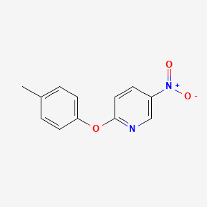 The compound is synthesized via nucleophilic aromatic substitution. A typical procedure involves reacting 2-chloro-5-nitropyridine with p-cresol in aqueous NaOH under reflux conditions . Key parameters include: