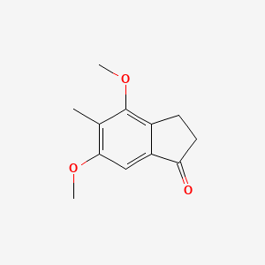 This compound occupies a unique niche within the substituted indanone family due to its distinct substitution pattern. Compared to simpler derivatives like 5,6-dimethoxy-1-indanone, the addition of a methyl group at C5 introduces steric effects that may influence conformational flexibility and receptor interactions. Methoxy groups at C4 and C6 contribute electron-donating effects, enhancing aromatic ring electron density and potentially improving binding to hydrophobic pockets in target proteins.