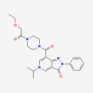 The mechanism of action of 7-(4-(2-ethoxyacetyl)piperazine-1-carbonyl)-5-isopropyl-2-phenyl-2H-pyrazolo[4,3-c]pyridin-3(5H)-one involves its interaction with molecular targets such as enzymes or receptors. The compound’s structure allows it to bind to these targets, potentially inhibiting or activating their function. This interaction can modulate various biochemical pathways, leading to therapeutic effects.