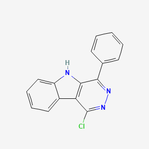 The mechanism of action of 1-chloro-4-phenyl-5H-pyridazino[4,5-b]indole involves its interaction with specific molecular targets, such as enzymes or receptors. The compound can bind to these targets, modulating their activity and leading to various biological effects. The exact pathways involved depend on the specific application and target.