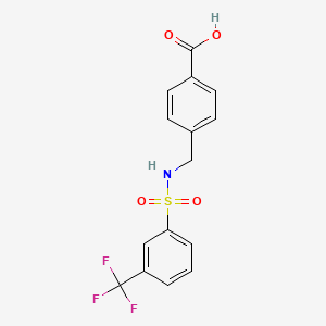The mechanism by which 4-(((3-(Trifluoromethyl)phenyl)sulfonamido)methyl)benzoic acid exerts its effects depends on its specific application. For example, in enzyme inhibition, the compound may bind to the active site of the enzyme, preventing substrate binding and subsequent catalysis. The trifluoromethyl group enhances binding affinity and selectivity, while the sulfonamide group provides additional interactions with the enzyme.