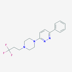 3-Phenyl-6-[4-(3,3,3-trifluoropropyl)piperazin-1-yl]pyridazine is a synthetic organic compound with the molecular formula C17H19F3N4 It is characterized by the presence of a phenyl group, a trifluoropropyl-substituted piperazine ring, and a pyridazine core