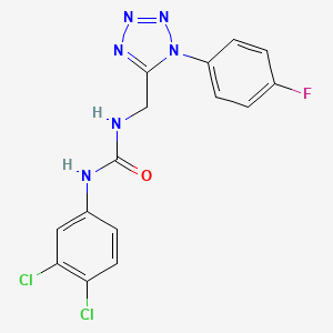 This compound is a urea derivative featuring a 3,4-dichlorophenyl group and a tetrazole ring substituted with a 4-fluorophenyl moiety. The tetrazole group acts as a bioisostere for carboxylic acids, enhancing metabolic stability while maintaining hydrogen-bonding capabilities .