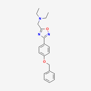 The synthesis of N-((3-(4-(benzyloxy)phenyl)-1,2,4-oxadiazol-5-yl)methyl)-N-ethylethanamine typically involves multiple steps. One common route includes the formation of the oxadiazole ring through the cyclization of appropriate precursors. The benzyloxyphenyl group can be introduced via a nucleophilic substitution reaction, and the final product is obtained by coupling the intermediate with N-ethylethanamine under controlled conditions.