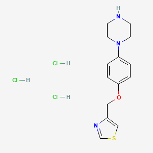 4-[(4-Piperazin-1-ylphenoxy)methyl]-1,3-thiazole;trihydrochloride undergoes various chemical reactions, including oxidation, reduction, and substitution. Common reagents used in these reactions include oxidizing agents like potassium permanganate and reducing agents such as sodium borohydride. Substitution reactions often involve nucleophiles like amines or thiols . The major products formed from these reactions depend on the specific conditions and reagents used but generally include derivatives of the original compound with modified functional groups.