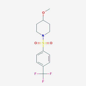 The mechanism of action of 4-methoxy-1-[4-(trifluoromethyl)benzenesulfonyl]piperidine involves its interaction with molecular targets such as enzymes or receptors. The trifluoromethyl group can enhance the compound’s binding affinity and specificity, while the methoxy group may influence its solubility and metabolic stability. The exact pathways and targets depend on the specific application and context of use.