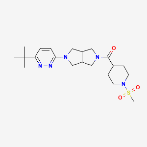 3-Tert-butyl-6-[5-(1-methanesulfonylpiperidine-4-carbonyl)-octahydropyrrolo[3,4-c]pyrrol-2-yl]pyridazine is a complex organic compound with a unique structure that includes a pyridazine ring, a piperidine moiety, and a tert-butyl group