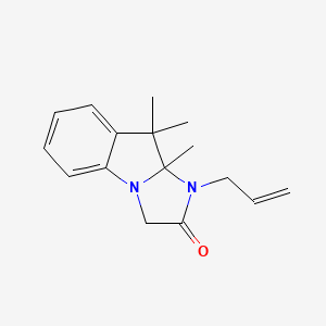 The mechanism of action of 1-allyl-9,9,9a-trimethyl-9,9a-dihydro-1H-imidazo[1,2-a]indol-2(3H)-one involves its interaction with various molecular targets and pathways. The indole nucleus allows it to bind with high affinity to multiple receptors, influencing biological processes such as cell signaling and enzyme activity .