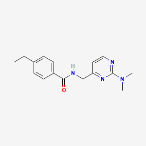 The synthesis of N-((2-(dimethylamino)pyrimidin-4-yl)methyl)-4-ethylbenzamide typically involves a multi-step process. One common synthetic route includes the following steps: