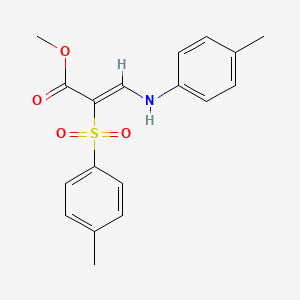 The synthesis of methyl (2Z)-3-[(4-methylphenyl)amino]-2-[(4-methylphenyl)sulfonyl]acrylate typically involves a multi-step process. One common synthetic route includes the reaction of 4-methylbenzenesulfonyl chloride with an appropriate amine to form the sulfonamide intermediate. This intermediate is then reacted with methyl acrylate under specific conditions to yield the final product. The reaction conditions often involve the use of a base such as triethylamine and solvents like dichloromethane to facilitate the reaction .