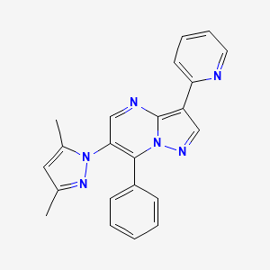 6-(3,5-dimethyl-1H-pyrazol-1-yl)-7-phenyl-3-(2-pyridinyl)pyrazolo[1,5-a]pyrimidine is a complex organic compound belonging to the class of pyrazolo[1,5-a]pyrimidines. Its unique structure, characterized by a fused pyrazole and pyrimidine ring system with various substituents, has garnered significant interest in medicinal chemistry and related fields due to its potential biological activities.