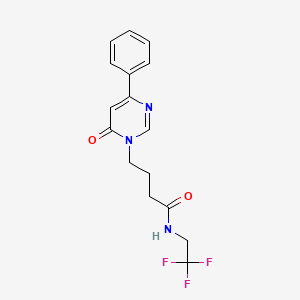 The mechanism of action of 4-(6-oxo-4-phenylpyrimidin-1(6H)-yl)-N-(2,2,2-trifluoroethyl)butanamide involves its interaction with specific molecular targets, such as enzymes or receptors. The trifluoroethyl group enhances its binding affinity and selectivity, while the pyrimidine ring facilitates interactions with nucleic acids or proteins. The phenyl group contributes to hydrophobic interactions, stabilizing the compound within its target site.