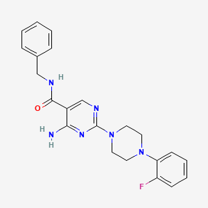 Biologically, 4-amino-N-benzyl-2-[4-(2-fluorophenyl)piperazin-1-yl]pyrimidine-5-carboxamide has shown promise as a ligand for various neurotransmitter receptors. This property positions it as a candidate for drug discovery, particularly in developing new psychiatric medications aimed at treating disorders such as depression and anxiety .