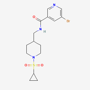 The synthesis of 5-bromo-N-((1-(cyclopropylsulfonyl)piperidin-4-yl)methyl)nicotinamide typically involves multiple steps, starting with the preparation of the piperidine derivative. One common method involves the reaction of 4-piperidone with cyclopropylsulfonyl chloride in the presence of a base such as triethylamine to form the cyclopropylsulfonyl piperidine intermediate. This intermediate is then reacted with 5-bromo-2-chloronicotinic acid in the presence of a coupling agent like N,N’-dicyclohexylcarbodiimide (DCC) to yield the final product.