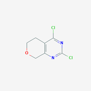 The mechanism by which 2,4-dichloro-6,8-dihydro-5H-pyrano[3,4-d]pyrimidine exerts its effects depends on its specific application. For example, in medicinal applications, it may interact with molecular targets such as enzymes or receptors, leading to inhibition or activation of specific pathways. The exact molecular targets and pathways involved would need to be determined through detailed biochemical studies.
