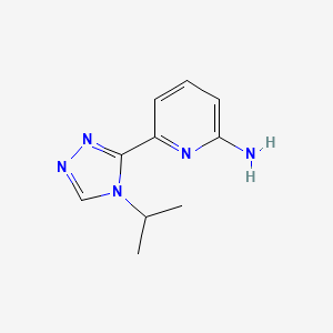 The mechanism by which 6-(4-Isopropyl-4H-1,2,4-triazol-3-yl)pyridin-2-amine exerts its effects depends on its specific application. For example, in antimicrobial applications, the compound may inhibit bacterial cell wall synthesis or disrupt microbial enzymes. The molecular targets and pathways involved are typically identified through biochemical assays and molecular docking studies.