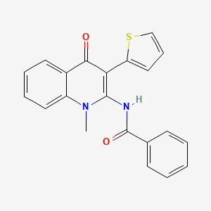 Chemistry and Biology: N-[1-methyl-4-oxo-3-(thiophen-2-yl)-1,4-dihydroquinolin-2-yl]benzamide has been studied for its potential biological activities, including antimicrobial, antiviral, and anticancer properties. Its structural complexity allows for interactions with various biological targets, making it a valuable compound in drug discovery and development.
