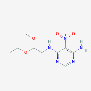 The synthesis of N4-(2,2-diethoxyethyl)-5-nitropyrimidine-4,6-diamine typically involves multi-step organic reactions. One common method includes the reaction of 2,2-diethoxyethylamine with a pyrimidine derivative under controlled conditions. The nitro group is introduced through nitration reactions, which often require strong acids like nitric acid and sulfuric acid as catalysts.
