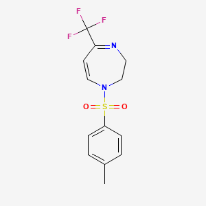 The synthesis of 1-[(4-methylphenyl)sulfonyl]-5-(trifluoromethyl)-2,3-dihydro-1H-1,4-diazepine typically involves the reaction of appropriate starting materials under specific conditions. One common synthetic route includes the reaction of 4-methylbenzenesulfonyl chloride with a suitable diazepine precursor in the presence of a base. The reaction conditions often involve the use of solvents such as dichloromethane or toluene and may require heating to facilitate the reaction .