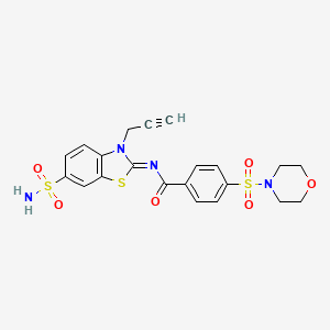 The mechanism of action of 4-(morpholine-4-sulfonyl)-N-[(2Z)-3-(prop-2-yn-1-yl)-6-sulfamoyl-2,3-dihydro-1,3-benzothiazol-2-ylidene]benzamide involves its interaction with specific molecular targets and pathways. The compound may bind to enzymes or receptors, modulating their activity and affecting cellular processes. The exact molecular targets and pathways depend on the specific application and biological context.