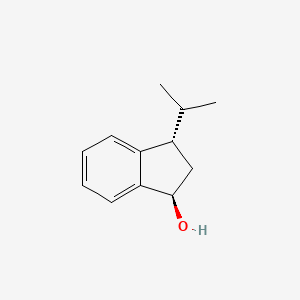 The mechanism of action of (1R,3S)-3-(propan-2-yl)-2,3-dihydro-1H-inden-1-ol involves its interaction with specific molecular targets and pathways. The hydroxyl group plays a crucial role in its reactivity, allowing it to form hydrogen bonds and interact with enzymes and receptors. These interactions can modulate biological pathways, leading to various effects such as antimicrobial activity.