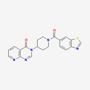 The synthesis of 3-(1-(benzo[d]thiazole-6-carbonyl)piperidin-4-yl)pyrido[2,3-d]pyrimidin-4(3H)-one typically involves multi-step organic reactions. One common synthetic route starts with the preparation of the benzo[d]thiazole-6-carbonyl chloride, which is then reacted with piperidine to form the intermediate 1-(benzo[d]thiazole-6-carbonyl)piperidine. This intermediate is subsequently reacted with pyrido[2,3-d]pyrimidin-4(3H)-one under specific conditions to yield the final product. The reaction conditions often include the use of solvents such as dichloromethane or tetrahydrofuran, and catalysts like triethylamine or pyridine to facilitate the reactions.