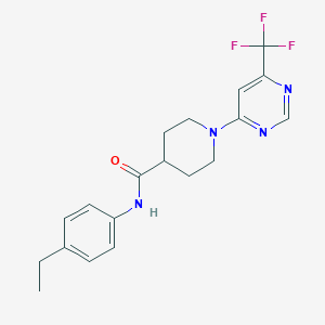 The synthesis of N-(4-ethylphenyl)-1-[6-(trifluoromethyl)pyrimidin-4-yl]piperidine-4-carboxamide typically involves multi-step organic synthesisCommon reagents used in these reactions include trifluoromethyl ketones and various catalysts to facilitate the formation of the desired product .