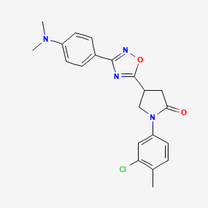The compound's IUPAC name is 1-(3-chloro-4-methylphenyl)-4-[3-[4-(dimethylamino)phenyl]-1,2,4-oxadiazol-5-yl]pyrrolidin-2-one. The chemical formula is , and it has a molecular weight of 396.87 g/mol.