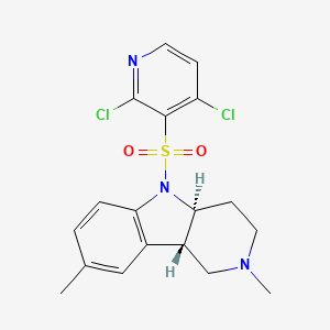 InChI=1S/C18H19Cl2N3O2S/c1-11-3-4-15-12(9-11)13-10-22(2)8-6-16(13)23(15)26(24,25)17-14(19)5-7-21-18(17)20/h3-5,7,9,13,16H,6,8,10H2,1-2H3/t13-,16+/m1/s1 | |