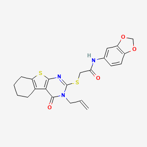 N-(1,3-benzodioxol-5-yl)-2-[(4-oxo-3-prop-2-enyl-5,6,7,8-tetrahydro-[1]benzothiolo[2,3-d]pyrimidin-2-yl)sulfanyl]acetamide | |