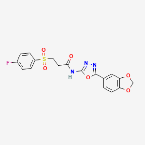 N-(5-(benzo[d][1,3]dioxol-5-yl)-1,3,4-oxadiazol-2-yl)-3-((4-fluorophenyl)sulfonyl)propanamide