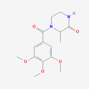 3-Methyl-4-(3,4,5-trimethoxybenzoyl)piperazin-2-one (CAS No. 1101200-79-6) is a synthetic compound belonging to the class of piperazinones. Its unique structure combines a piperazinone ring with a trimethoxybenzoyl group, which has been investigated for various biological activities, including potential anticancer and antimicrobial properties. This article delves into the biological activity of this compound, summarizing key research findings, mechanisms of action, and potential applications in medicine.