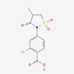 The mechanism by which 2-Chloro-4-(4-methyl-1,1,3-trioxo-1,2-thiazolidin-2-yl)benzoic acid exerts its effects involves its interaction with specific molecular targets. The compound may bind to enzymes or receptors, altering their activity and leading to desired biological outcomes. The pathways involved are often related to cellular signaling and metabolic processes.