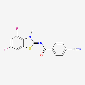 The mechanism of action of 4-cyano-N-[(2Z)-4,6-difluoro-3-methyl-2,3-dihydro-1,3-benzothiazol-2-ylidene]benzamide involves its interaction with specific molecular targets. The cyano and difluoromethyl groups play a crucial role in binding to enzymes or receptors, thereby modulating their activity. The compound may inhibit or activate certain pathways, leading to its observed biological effects .