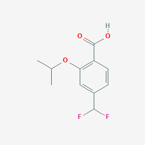 The synthesis of 4-(Difluoromethyl)-2-propan-2-yloxybenzoic acid typically involves the introduction of the difluoromethyl group to the benzoic acid core. One common method is the metal-mediated difluoromethylation of aromatic compounds. This process can be achieved using various reagents and catalysts, such as difluorocarbene precursors and transition metals like palladium or copper .