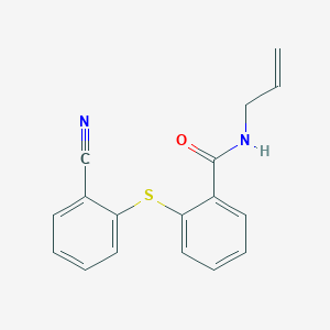 2-[(2-cyanophenyl)sulfanyl]-N-(prop-2-en-1-yl)benzamide is a chemical compound with the molecular formula C17H14N2OS It is known for its unique structural properties, which include an allyl group, a cyanophenyl group, and a benzenecarboxamide moiety