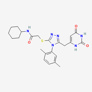 N-cyclohexyl-2-{[4-(2,5-dimethylphenyl)-5-[(2,6-dioxo-1,2,3,6-tetrahydropyrimidin-4-yl)methyl]-4H-1,2,4-triazol-3-yl]sulfanyl}acetamide is a complex organic compound with potential applications in various scientific fields. This compound features a unique structure that includes a cyclohexyl group, a dimethylphenyl group, and a triazole ring, making it an interesting subject for research in chemistry, biology, and medicine.