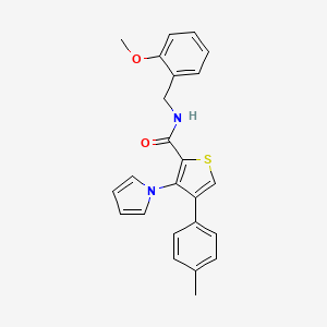 The mechanism of action of “N-[(2-methoxyphenyl)methyl]-4-(4-methylphenyl)-3-(1H-pyrrol-1-yl)thiophene-2-carboxamide” would depend on its specific biological activity. Generally, the compound may interact with molecular targets such as enzymes, receptors, or ion channels, leading to modulation of cellular pathways. The exact pathways involved would require detailed biochemical studies.