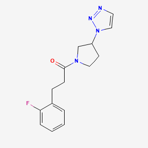 Synthetic Routes and Reaction Conditions: The synthesis of 1-(3-(1H-1,2,3-triazol-1-yl)pyrrolidin-1-yl)-3-(2-fluorophenyl)propan-1-one typically involves a multi-step process: