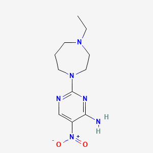The synthesis of 2-(4-Ethyl-1,4-diazepan-1-yl)-5-nitropyrimidin-4-amine typically involves multi-step organic reactions. One common method includes the formation of the diazepane ring followed by the introduction of the nitropyrimidine group. The reaction conditions often require specific catalysts and solvents to ensure high yield and purity.