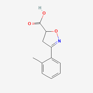 3-(o-Tolyl)-4,5-dihydroisoxazole-5-carboxylic acid is an organic compound belonging to the class of isoxazole derivatives, characterized by its five-membered heterocyclic structure containing nitrogen and oxygen. This compound has garnered attention in scientific research for its potential biological activities, particularly in antimicrobial and anti-inflammatory applications.