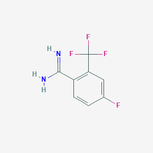 4-Fluoro-2-trifluoromethyl-benzamidine is a halogenated aromatic amidine. While detailed research focused exclusively on this specific molecule is not widespread, its chemical architecture makes it a valuable intermediate in synthetic chemistry. Its importance is best understood by examining the individual contributions of its constituent parts within the broader field of chemical design.