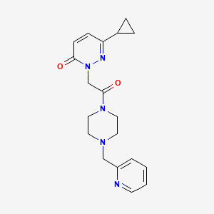 6-cyclopropyl-2-(2-oxo-2-(4-(pyridin-2-ylmethyl)piperazin-1-yl)ethyl)pyridazin-3(2H)-one is a compound that has garnered attention for its potential biological activities. This article explores its pharmacological properties, mechanisms of action, and relevant research findings, including case studies and data tables.
