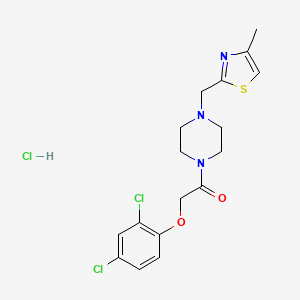 2-(2,4-Dichlorophenoxy)-1-(4-((4-methylthiazol-2-yl)methyl)piperazin-1-yl)ethanone hydrochloride is a complex organic compound that integrates elements from both thiazole and piperazine moieties. This compound is of interest due to its potential biological activities, particularly in the fields of anti-inflammatory, anticancer, and antimicrobial research.