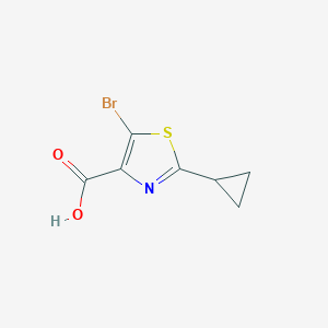 The mechanism of action of 5-Bromo-2-cyclopropyl-1,3-thiazole-4-carboxylic acid depends on its specific application. In medicinal chemistry, it may act by binding to specific molecular targets, such as enzymes or receptors, thereby modulating their activity. The thiazole ring and its substituents can interact with the active sites of enzymes, leading to inhibition or activation of enzymatic functions .