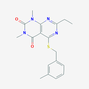 7-ethyl-1,3-dimethyl-5-{[(3-methylphenyl)methyl]sulfanyl}-1H,2H,3H,4H-[1,3]diazino[4,5-d]pyrimidine-2,4-dione is a complex organic compound belonging to the class of diazino pyrimidine derivatives. This compound is characterized by its unique structure, which includes a diazino pyrimidine core with various substituents, making it a subject of interest in various fields of scientific research.