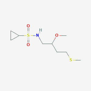 N-[2-methoxy-4-(methylsulfanyl)butyl]cyclopropanesulfonamide is a complex organic compound with a unique structure that includes a cyclopropane ring, a sulfonamide group, and a methoxy-methylsulfanyl substituted butyl chain