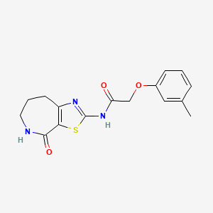 The synthesis of 2-(3-methylphenoxy)-N-{4-oxo-4H,5H,6H,7H,8H-[1,3]thiazolo[5,4-c]azepin-2-yl}acetamide typically involves multi-step organic reactions. One common approach starts with the preparation of the thiazole ring, which can be synthesized by reacting ethyl 4-bromo-3-oxopentanoate with thiourea in ethanol . The azepine ring is then fused to the thiazole ring through a series of cyclization reactions under controlled conditions .
