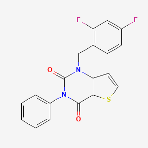 1-[(2,4-Difluorophenyl)methyl]-3-phenyl-1H,2H,3H,4H-thieno[3,2-d]pyrimidine-2,4-dione is a thienopyrimidine derivative characterized by a bicyclic thieno[3,2-d]pyrimidine core substituted with a 2,4-difluorobenzyl group at position 1 and a phenyl group at position 2.