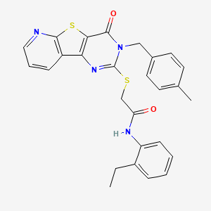 InChI=1S/C27H24N4O2S2/c1-3-19-7-4-5-9-21(19)29-22(32)16-34-27-30-23-20-8-6-14-28-25(20)35-24(23)26(33)31(27)15-18-12-10-17(2)11-13-18/h4-14H,3,15-16H2,1-2H3,(H,29,32) | |